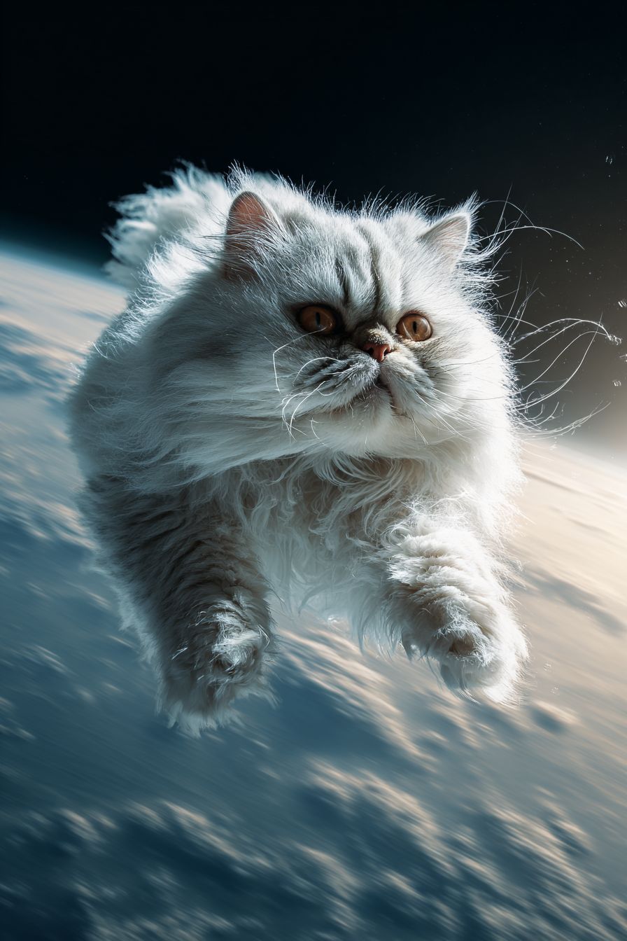 قطة فارسية تلعب في محطة فضائية عديمة الوزن