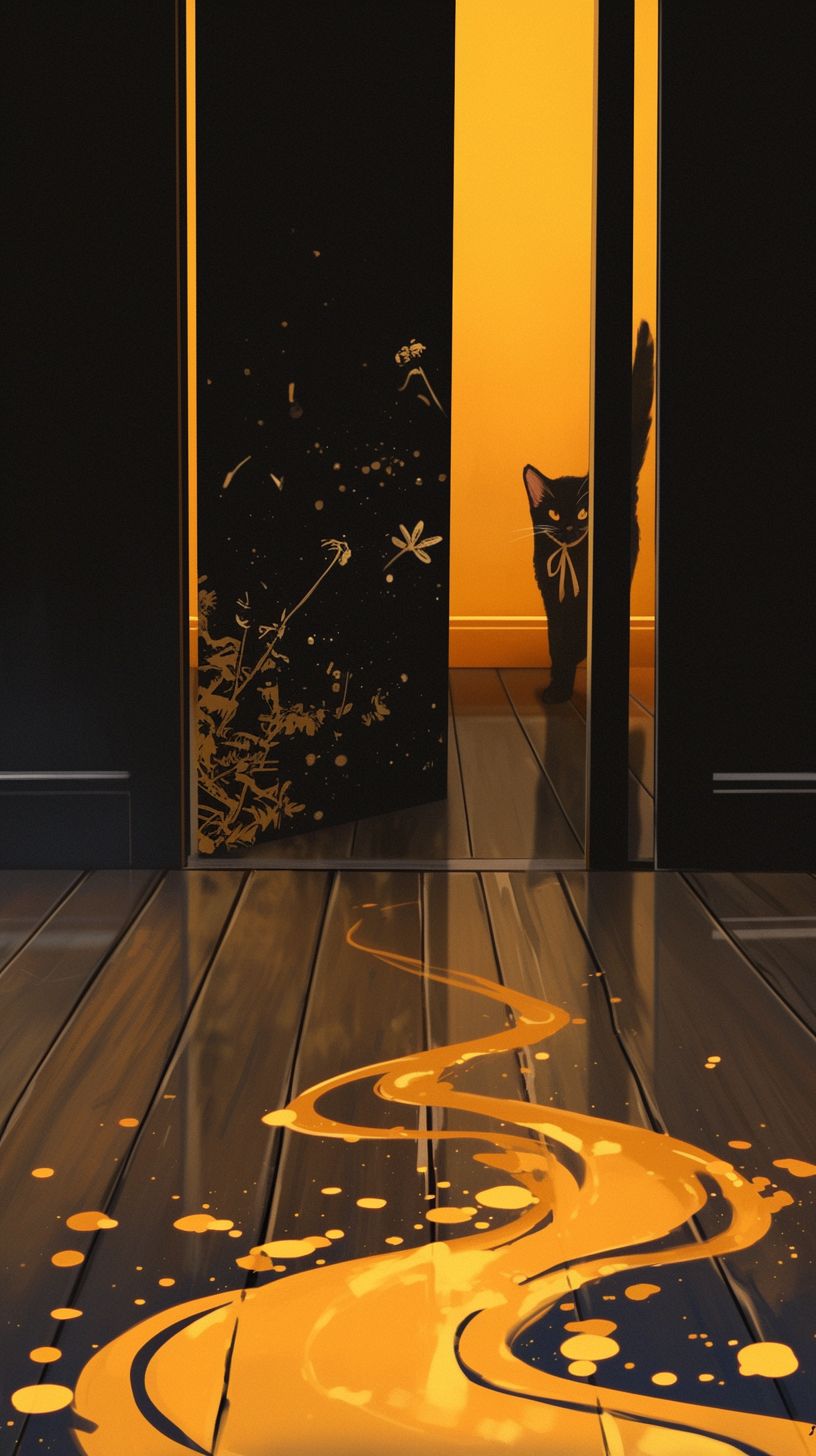 قطة مونسكن مرحة تجري وراء نقاط الليزر على أرضية خشبية مصقولة في منتصف الليل.